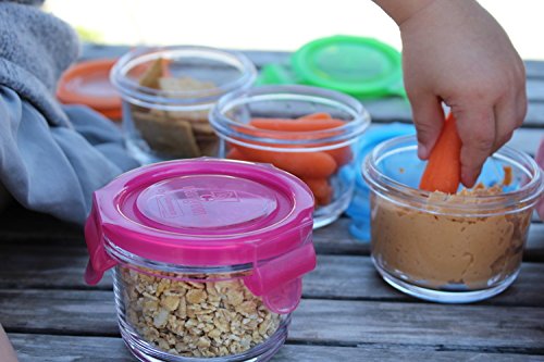 Wean Green Round Wean Bowls 5.4 Ounce Baby Food Glass Containers - Multi Color Garden (Set of 4) Featuring Raspberry, Blueberry, Pea, Carrot