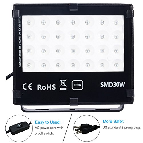 - Black Lights New Reflector Design: Design with 28pcs 1watt high power LEDs, double chips, 90-degree cup, higher lumen out put per watt than other blacklight floodlights, super bright!