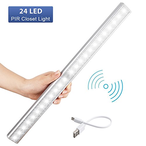 Motion Sensor Cabinet Lights, Weihao 24 LED Closet Lights with USB Rechargeable,Stick-on Anywhere Wireless Wardrobe Light Bar, Night Light for Kitchen, Cabinets,Front Door
