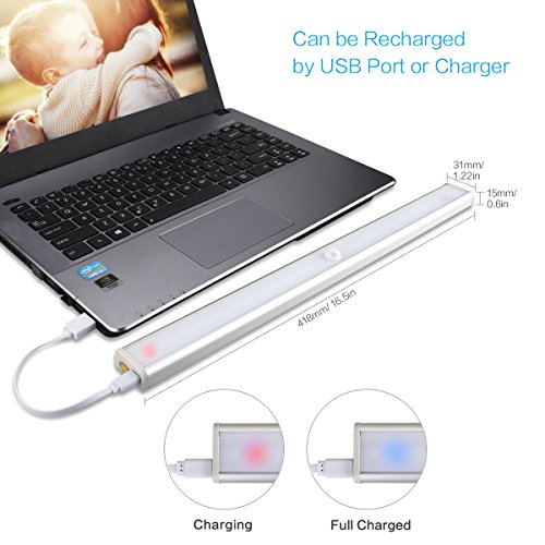 【USB Rechargeable】Powered by built-in 3.7V 960mAh battery, this sensing light can be recharged by USB devices (like USB Adapter,power bank,laptop) with included charging cable.