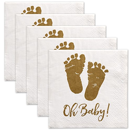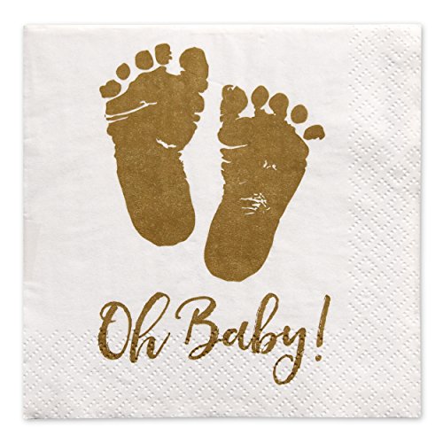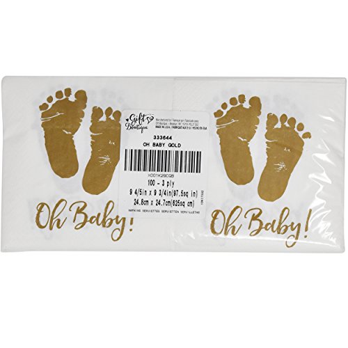 Studio : Gift Boutique Publisher : Gift Boutique Product Description Gift Boutique Oh Baby Napkins includes 100 of 3-ply paper beverage (cocktail) napkins. Each Napkin Measures Approximately 5 x 5-inch folded; made in the USA. Gold feet on white adds sparkle to any occasion. Celebrate a baby shower, sprinkle, gender reveal, homecoming party or event with these festive beverage napkins. Be sure to order plenty of napkins for your event - we recommend 2 to 3 napkins per person. 0