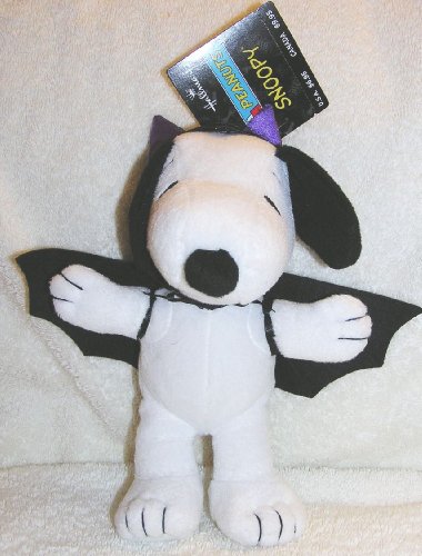 -. Feature : Plush Snoopy Dressed as Bat Bean Bag Doll for Halloween / 8" high / wearing black bat wing with attached hood with pointy ears / Made by Hallmark / No longer available in stores