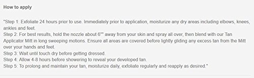 Get salon professional results every time. This easy-to-use self-tanning mist contains a 100 percent natural dha for a streak-free, natural-looking glow on all skin tones. Great for spray tanning your friends for special events, the spray tan technique guide ensures simple application-and a beautiful, golden color.Feature
