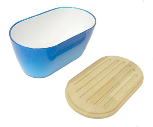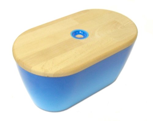 Omada Woody Bread Bin with Cover/Chopping Board, Turquoise