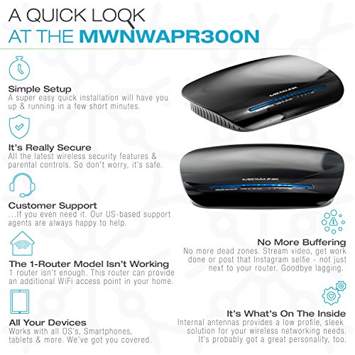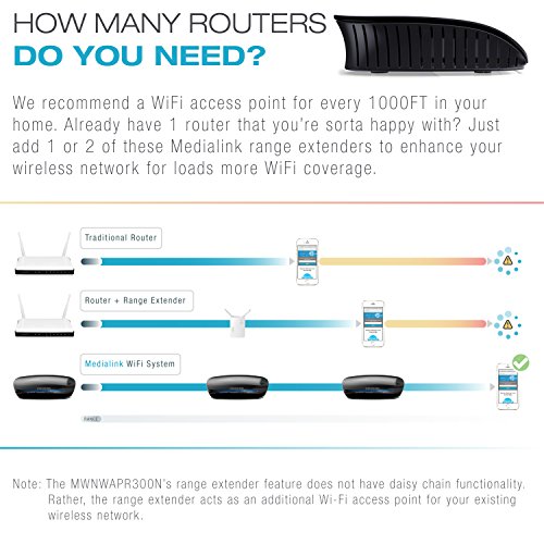 Wireless Range Extender & Wireless Router Combo (300 Mbps) by Medialink-2.4GHz-802.11b/g/n This Medialink Router & Range Extender can create a WiFi network for you to wireless connect your devices to the internet. Do you want better WiFi coverage than what you are getting from your existing wireless router? This unit can alternatively be setup (with the help of an easy YouTube video) to extend your signal into dead zones throughout your home.