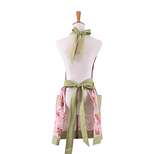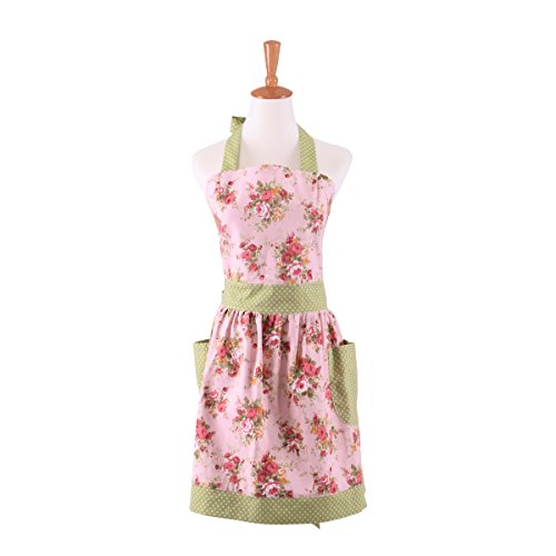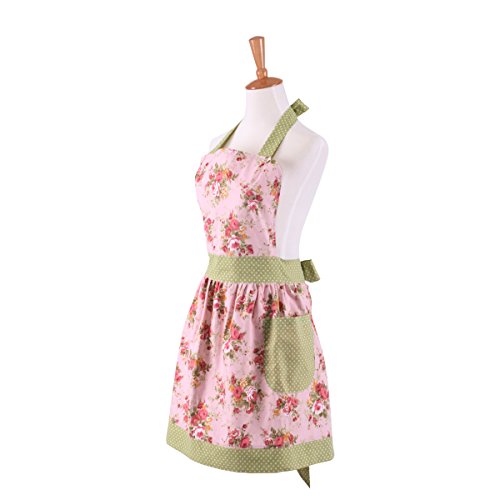 Neoviva Cotton Canvas Kitchen Apron for Women, Floral Pink