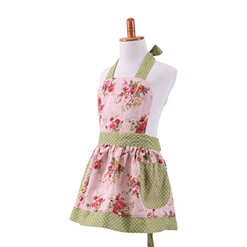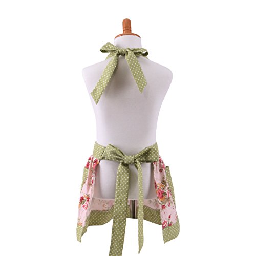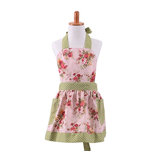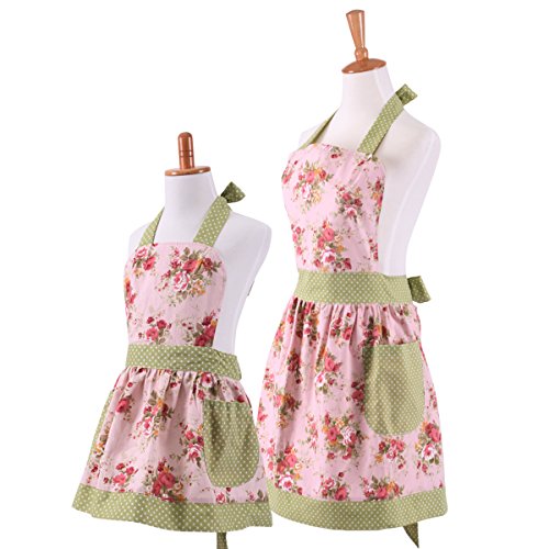 Neoviva Cotton Canvas Kitchen Apron for Women and Kid Girl, Floral Pink