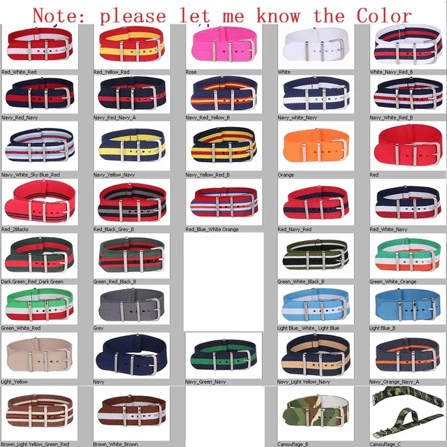 상품 내용 소재:나일론 스트랩, 스테인레스 스틸 버클 이 가격 10 개 스트랩. 당신이 대해 나에게 메시지를 남겨주세요. 밴드 폭:22 미리메터 밴드 길이:275 미리메터 걸쇠 유형:버클 봄 바:포함 색상:선택. ![]() ![]() ![]() 우리의 상점, 우리는 나토 스트랩 수십 컬러 18 미리메터, 20 미리메터, 22 미리메터, 24 미리메터. 아래 링크를 방문:
