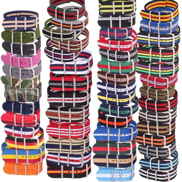 | [해외] 10 개 도매 많은 스트라이프 복고풍 22 미리메터 강한 군사 육군 나토 직물 나일론 시계 짠 스트랩 밴드 버클 22 미리메터 줄 |
