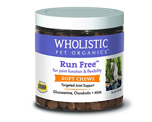 -. Binding : Misc. -. Brand : Wholistic Pet Organics -. EAN : 0877607001194 -. Feature : A synergistic blend of proven nutraceuticals that provides targeted joint support now available in a soft chew / Glucosamine, Chondroitin, & MSM / Raw, natural whole food ingredients / Made in the USA and regulated by the NASC (National Animal Supplement Council) -. Label : Wholistic Pet Organics LLC -. Manufacturer : Wholistic Pet Organics LLC -. Model : Run Free(TM) Soft Chews -. MPN : Run Free(TM) Soft Chews -. PackageQuantity : 1 -. PartNumber : Run Free(TM) Soft Chews -. ProductGroup : Pet Products -. ProductTypeName : PET_SUPPLIES -. Publisher : Wholistic Pet Organics LLC -. Size : 150 Count -. Studio : Wholistic Pet Organics LLC -. Title : Wholistic Pet Organics 150 Count Run Free Soft Chews Supplement -. UPC : 877607001194