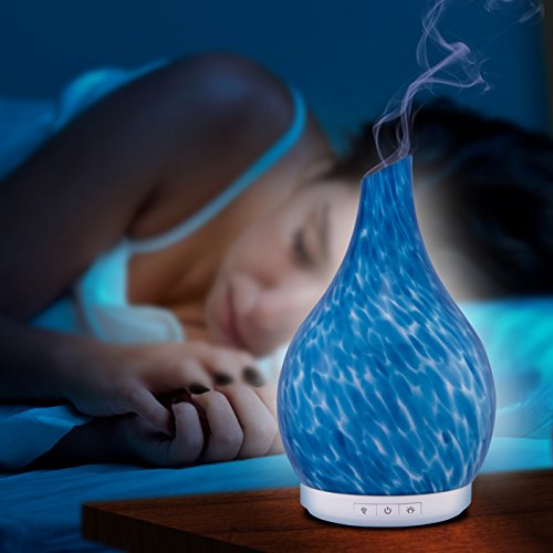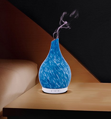 Aromatherapy Essential Oil Glass Diffuser Cool Mist Ultrasonic Humidifier Hand Blown Glass Colorful LED White Glow 230ml Capacity with Safety Auto-Shut Off Feature (GAIUS BLUE)