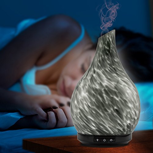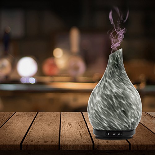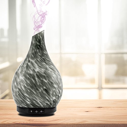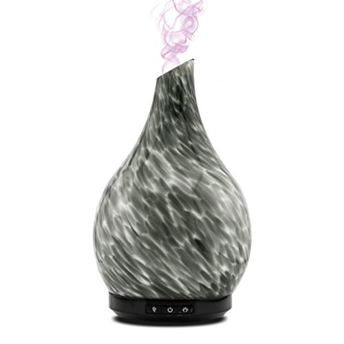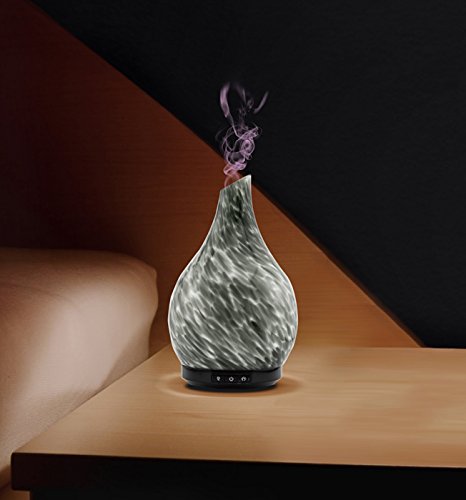 Aromatherapy Essential Oil Glass Diffuser Cool Mist Ultrasonic Humidifier Hand Blown Glass Colorful LED White Glow 230ml Capacity with Safety Auto-Shut Off Feature (GAIUS GREY)