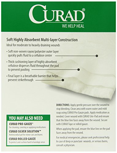 -. Feature : CURAD® Sterile Sitepads are designed for larger wounds or increased draining wounds / Helps to provide extra strength and absorbency compared to traditional gauze items / Helps reduce the number of changes and provides comfort / Each box contains 12 sterile site pads, 5" x 9" / Latex-free