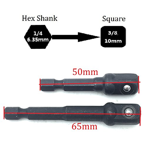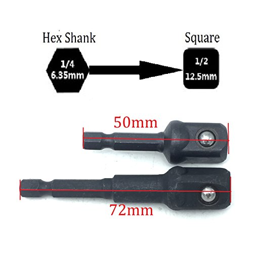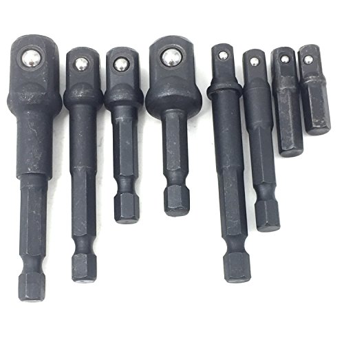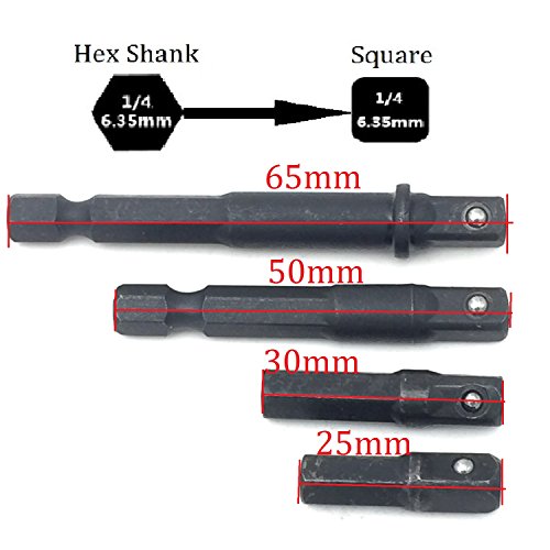Includes:8Pcs - 4 x 1/4" drive bit adapter set, 2 x 3/8" drive drill adapter set, and 2 x 1/2" drive socket adapter and each with a 1/4 inch hex shank driver socket wrench adapter set - Specification: Sockets Standard 1/4" hex shank to 1/4" 3/8" 1/2" socket & 1/4 " shank can be converted to 1/4" 3/8" 1/2" square head