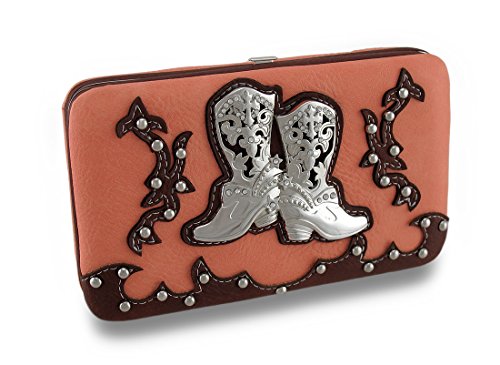 Studio : Zeckos Publisher : Zeckos Product Description This classy textured vinyl hard case wallet features a pair of rhinestone accented cowgirl boots on the front surrounded with Western style suede look vinyl trim and chrome finish studs! This 7.5 inch long, 4.5 inch high, 1.5 inch wide (19 X 11 X 4 cm) wallet secures with an easy-open snap that opens to reveal a polyester lined interior including 5 card slots, a clear-view ID window, 4 slip pockets for cash and receipts, a zippered pouch for spare change, a removable checkbook cover with 4 card slots and a clear-view ID window, and a snap pocket on the back! This wallet has all you need to carry just the essentials, and is wonderful as a gift sure to be enjoyed! 0