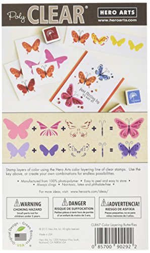 -. Binding : Misc. -. Brand : Hero Arts -. EAN : 0683203041256 -. Feature : This set is part of the Color Layering Collection. Look for a guide on the back for how to use these stamps / Hero Arts Clear Design sets are premium-quality, USA-made photopolymer designed for true stamping impressions / Tear-resistant, easy to clean, always cling, and non-toxic / Use with an acrylic block for easy stamping / Clean easily with Hero Arts Ultra Clean Stamp Cleaner -. IsAutographed : 0 -. Label : Hero Arts -. Manufacturer : Hero Arts -. Model : CL867 -. MPN : CL867 -. NumberOfItems : 1 -. PackageQuantity : 1 -. PartNumber : CL867 -. ProductGroup : Art and Craft Supply -. ProductTypeName : HOME -. Publisher : Hero Arts -. Studio : Hero Arts -. Title : Hero Arts Color Layering Butterflies Clear Stamp Set -. UPC : 085700902922