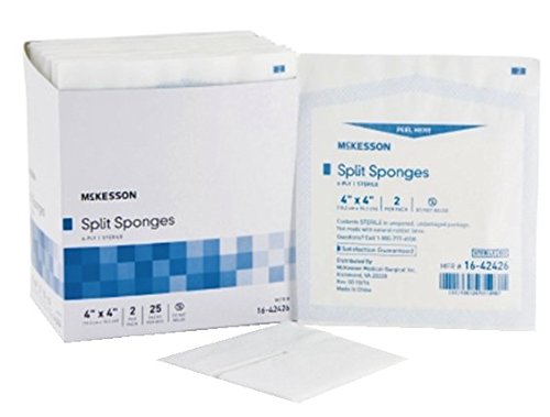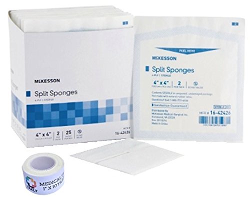 Sterile 4"X4" 6 Ply Split Drain Sponge 25 Packs Of 2 + 1 Roll Of Vakly Medical Tape (1)