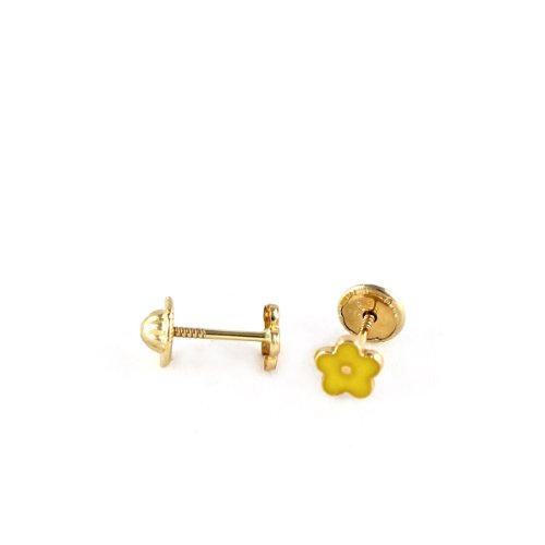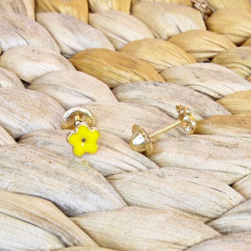 - Title : 14k Yellow Gold Yellow Enamel Flower Children / Baby Earrings