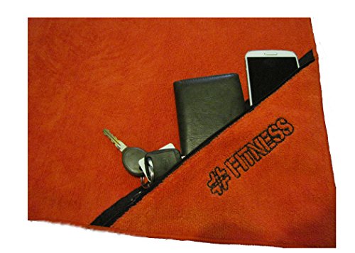 Fitness Microfiber Compact Yoga Towel / Gym Towel / Fitness Towel with Zipper Pocket 24 Inches x 48 Inches Antibacterial Fast-Drying Workout Equipment (Red)