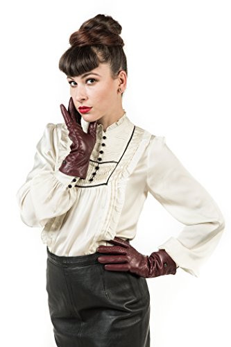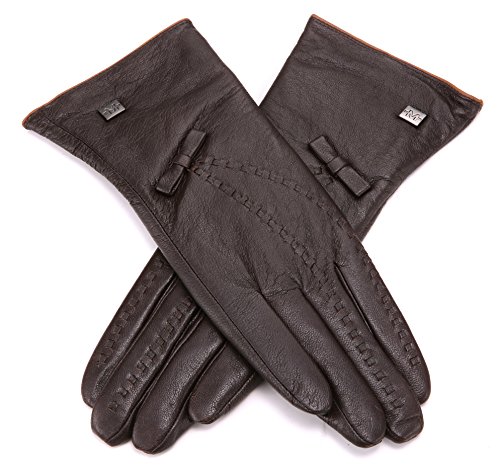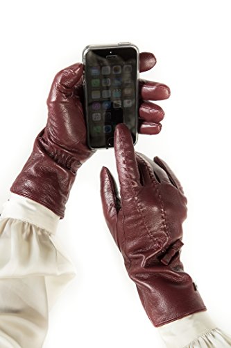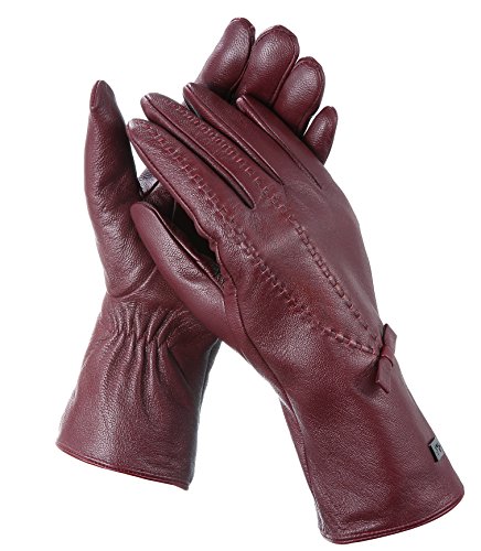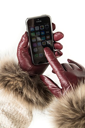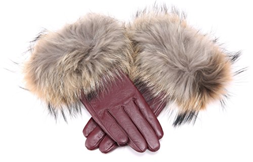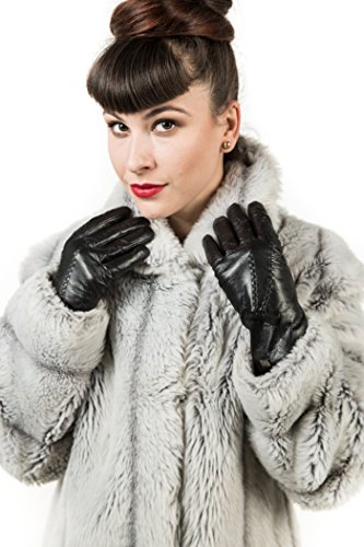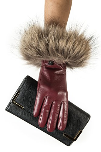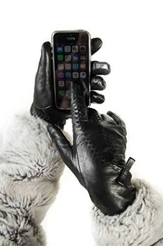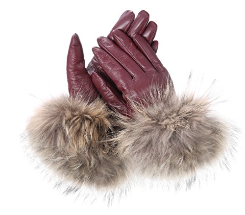 | Luxury Leather Gloves For Women, Touchscreen Cold Weather Long Sleeve Gloves - Rabbit Fur Cuffs... |