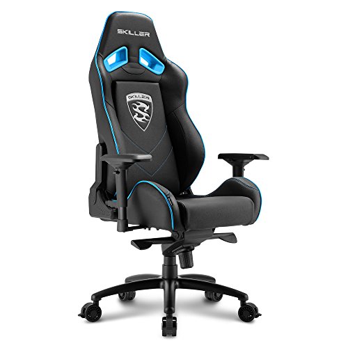 Sharkoon Skiller SGS3 Premium Gaming Seat mit Kunstlederbezug, Aluminiumfusskreuz, extragrossen Rollen, 4-Wege-Armlehnen, Stahlrahmen, Kopf- und Lendenkissen Stoffbezug