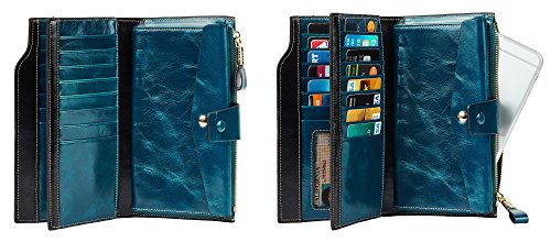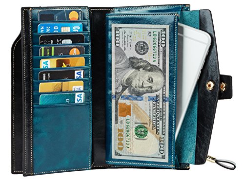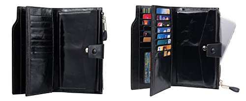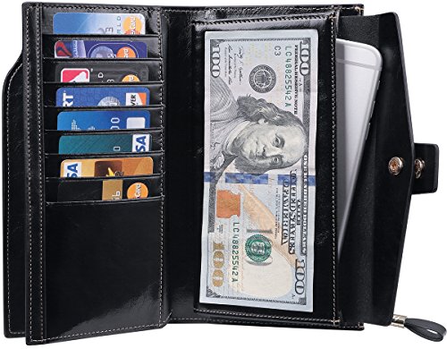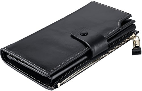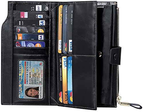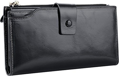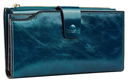 -. Title : Travelambo Womens RFID Blocking Large Capacity Luxury Waxed Genuine Leather Clutch Wallet Multi Card Organizer