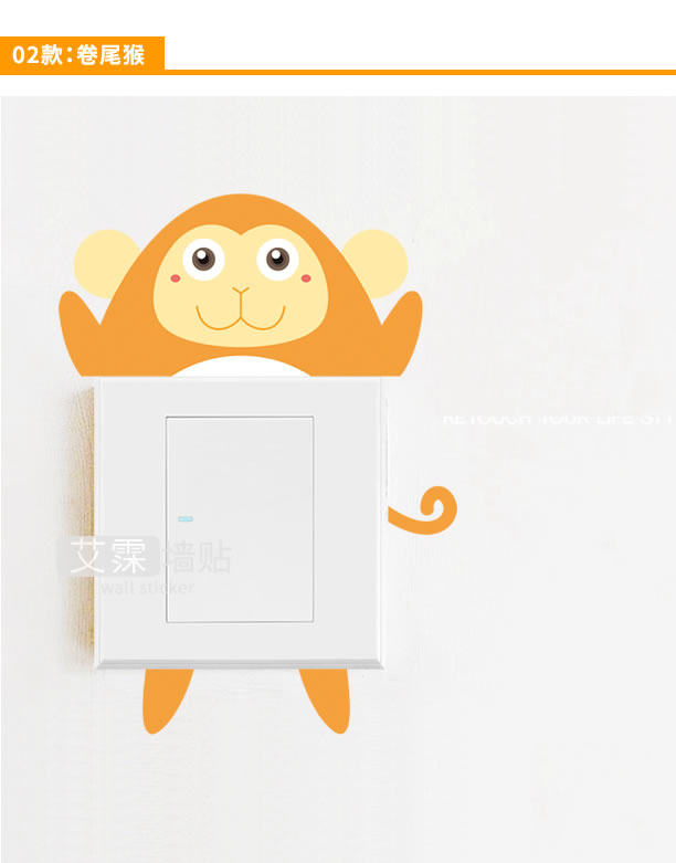 可移除开关贴可爱动物系列客厅宿舍创意卡通儿童幼儿园教室墙贴