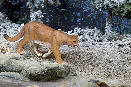-. Feature : The largest of the small cat species, male mountain lions can grow up to 6 feet long and weigh 220 pounds. They have powerful hind legs and can jump almost 20 feet at a time. This replica captures the piercing eyes and stealthy gate of North America's most cunning carnivore. / Wild Safari® North American Wildlife collection represents the many animals, great and small, that call North America home. The entire line was designed and sculpted by experts to ensure realistic authenticity. / Made with Safari Ltd's industry-leading standards, this product has been individually hand painted, features solid construction from quality, safe, phthalate and lead-free materials, and includes an educational hangtag in 5 languages. / Suitable for collectors, enthusiasts, teachers, and kids, you can admire it on a shelf, use it in the classroom, or simply enjoy playing with it. / Lifelike and realistic from nose to tail, this North American Wildlife Mountain Lion measures 5.46"L x 1.21"W x 2.34"H