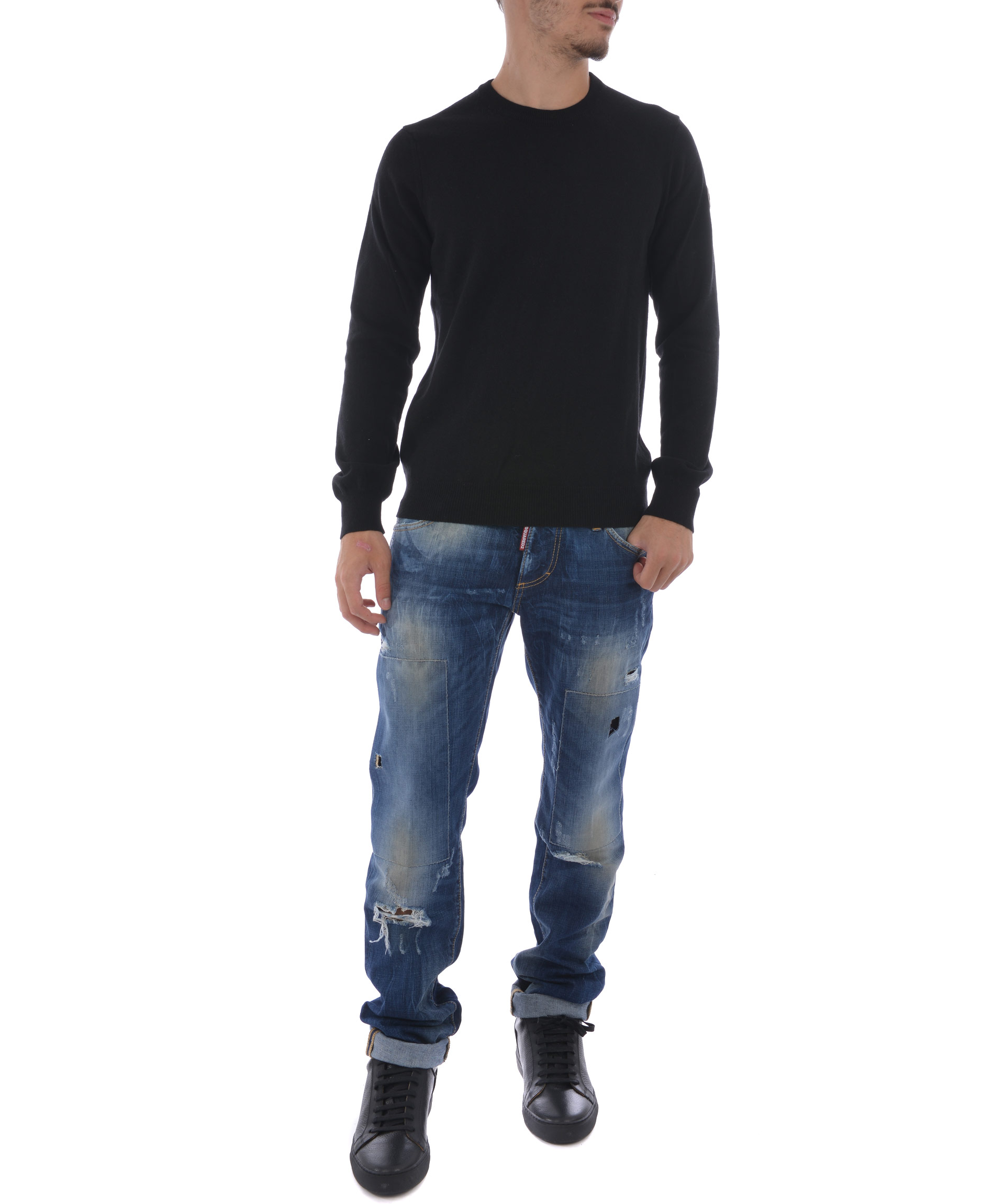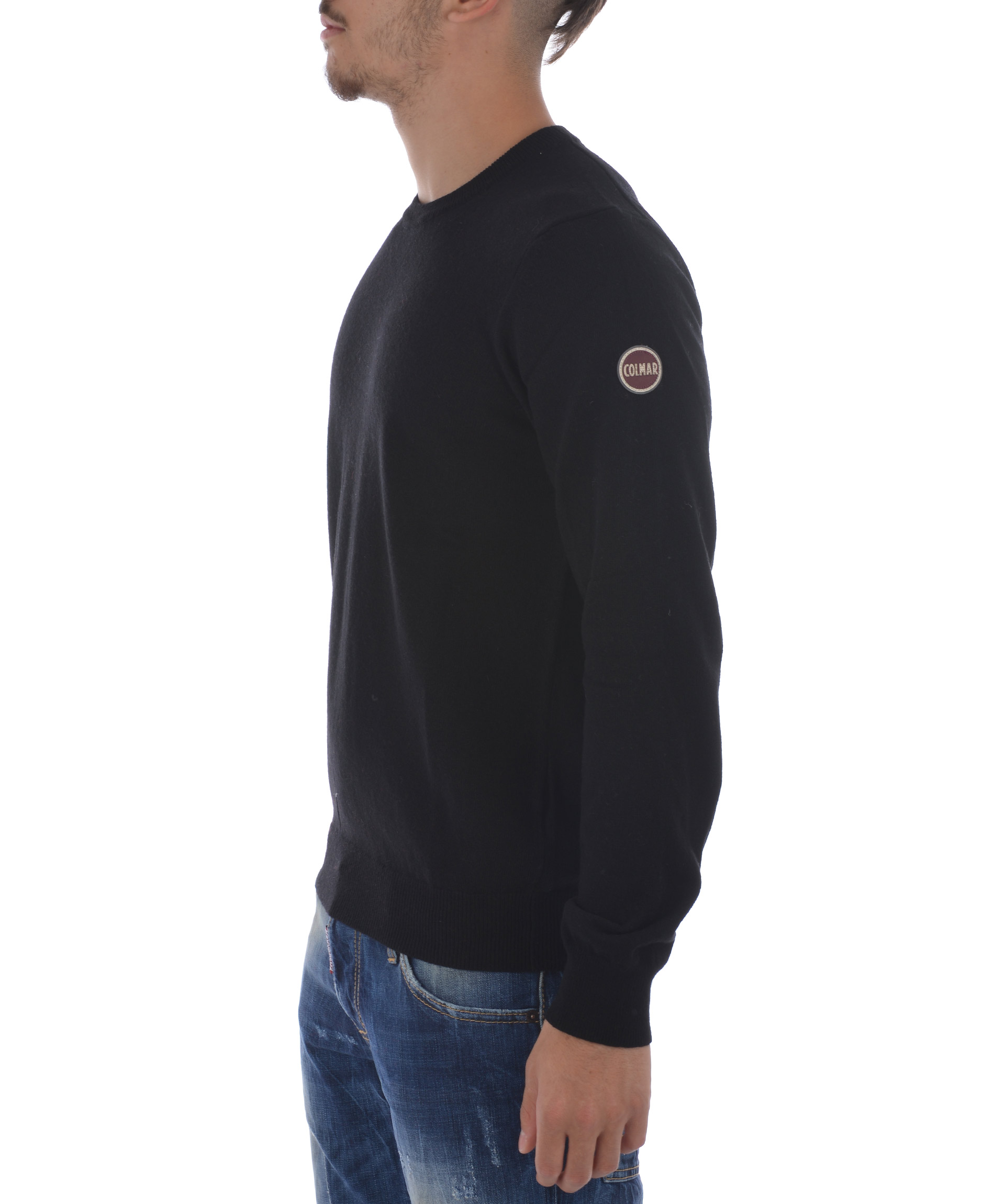 Maglia Colmar Original in misto lana e cashmere Nero. Girocollo a costine. Manica lunga. Polsi e fondo a costine. Patch logo applicato sulla manica. Misura in foto M 40% lana, 28% viscosa, 15% poliammidica, 10% cashmere, 7% angora