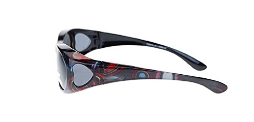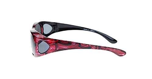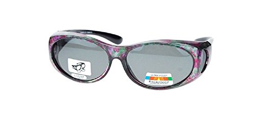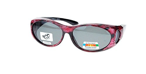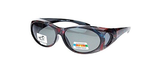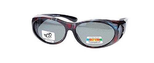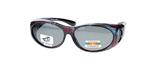 Product Description Fit Over sunglasses are perfect for anyone who wants the benefit of sun protection while wearing their prescripton glasses. They're lightweight and easy to slip on over your prescription glasses. These glasses are designed to wrap around your face blocking the sun from the sides as well which allows for an inexpensive alternative to expensive prescription sunglasses. All sizes are polarized which will increase clarity, reduce eye fatigue, and glare protection while golfing, driving, and all water sports. 0