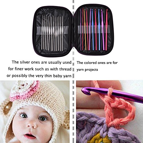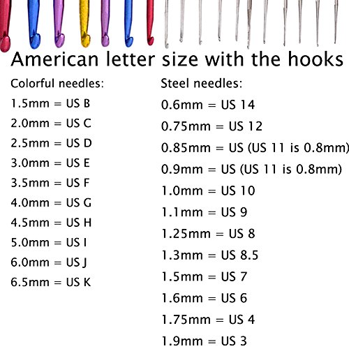 - ✔ ECONOMIC - High quality and value for the price. Two rows packed, 11pcs per row. 22pcs total. Include two different types of hooks. The colored ones are for yarn projects. The silver ones are usually used for finer work such as with thread or possibly the very thin baby yarn.