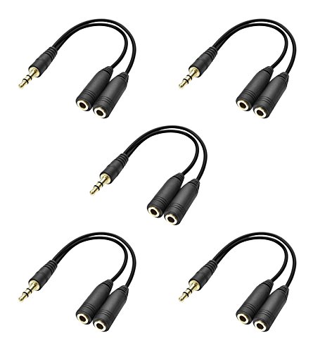 (5 Pack) SaiTech 3.5mm Stereo Jack Splitter Cable Adapter For ipod, Mp3 Player, Mobile Phone, Laptop, PC, Headphone Speakers - 3.5mm Male to 2 X Female - Black