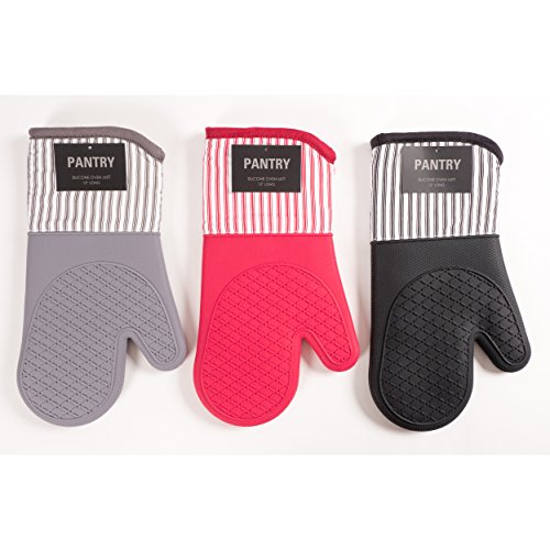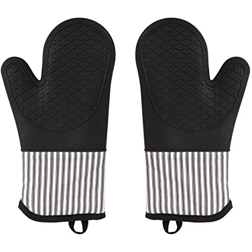 Pantry Silicone Oven Mitts 13-Inch - Heat Resistant to 480 F - Set of 2 Metro Stripe Black
