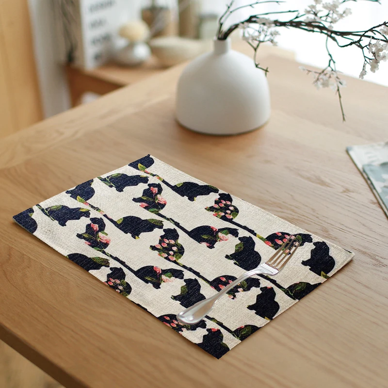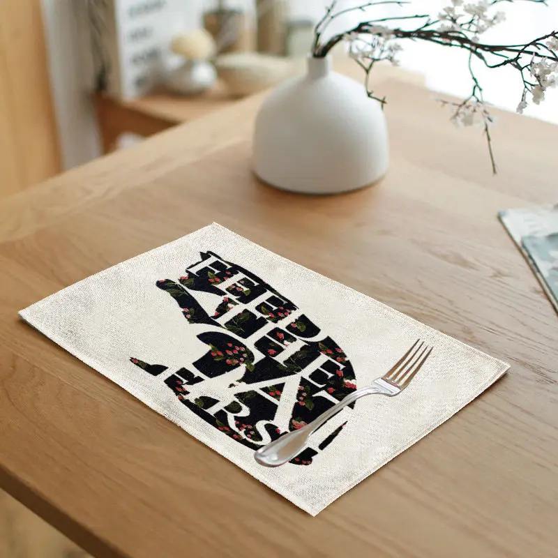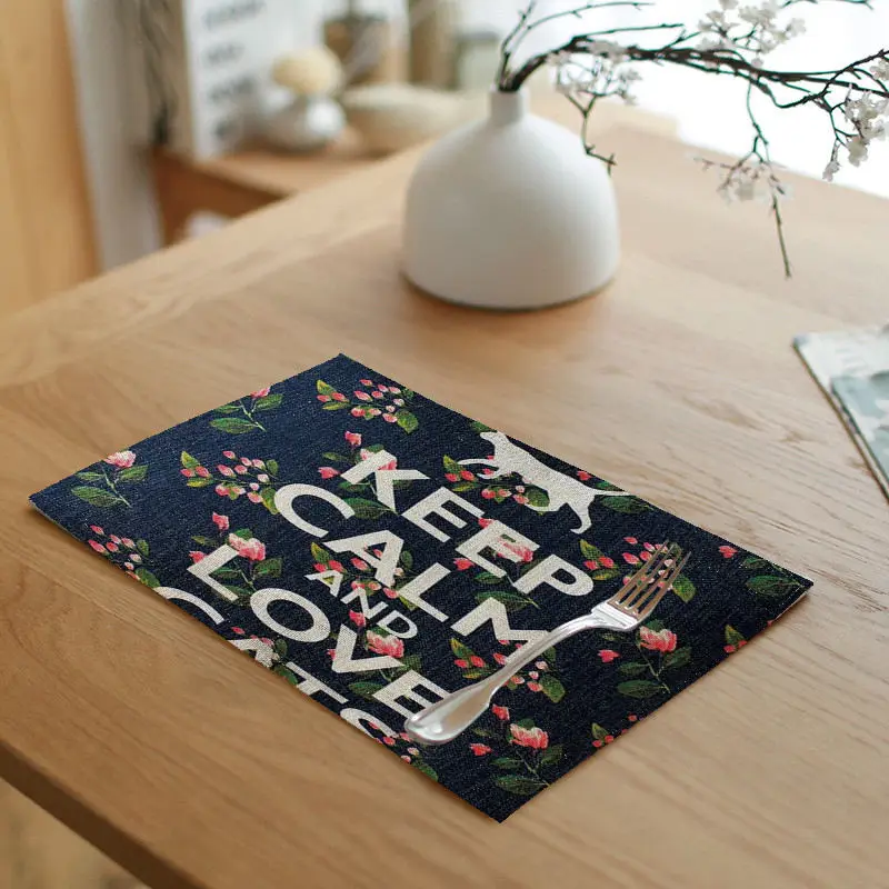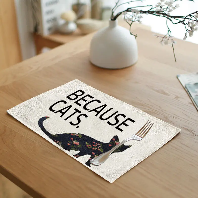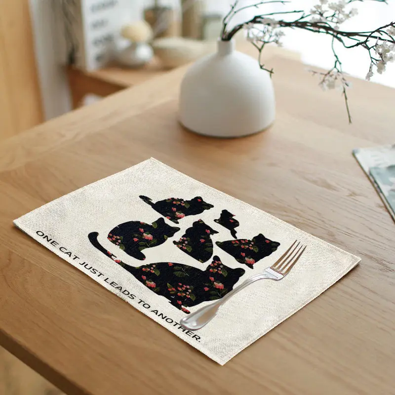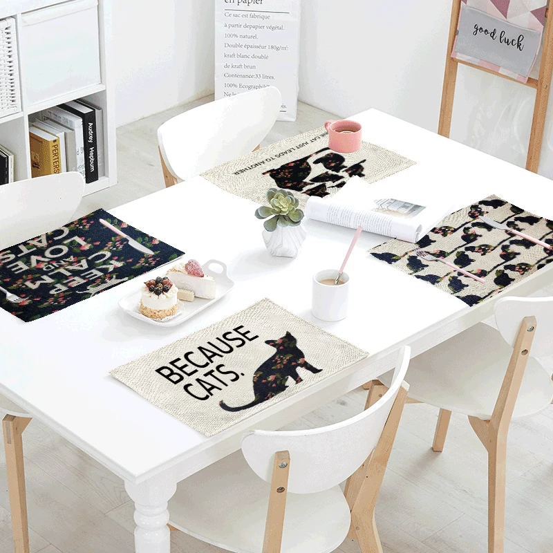 Pattern:Black cat letters red flowers green leaves