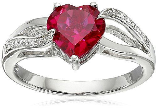 -. Binding : Jewelry -. Brand : Amazon Collection -. Department : women -. Feature : The natural properties and composition of mined gemstones define the unique beauty of each piece. The image may show slight differences to the actual stone in color and texture / All our diamond suppliers confirm that they comply with the Kimberley Process to ensure that their diamonds are conflict free. / Imported -. Label : Amazon Curated Collection -. Manufacturer : Amazon Curated Collection -. Model : 58594/STGSIL/I7/XR0/STD-Parent -. ProductGroup : Jewelry -. ProductTypeName : FINERING -. Publisher : Amazon Curated Collection -. Studio : Amazon Curated Collection -. Title : Sterling Silver Heart Created Ruby and Diamond Ring