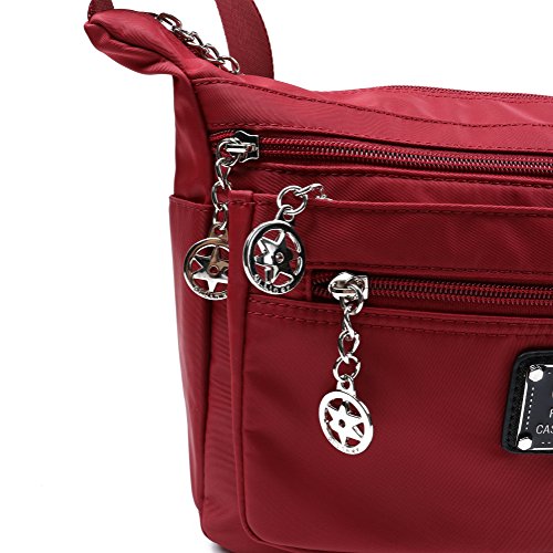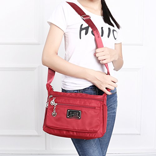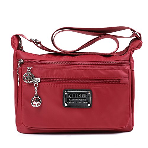 Product Description It all fits. Wallet, keys, necessities, travel docs, more ... in one easy-to-carry crossbody bag. Six zippered pockets elastic compartments pleated bottom ensures everything fits. Whether you're boarding a plane for an overseas jaunt or hopping in the car for a weekend getaway, one thing is certain: Staying organized is the key to a stress-free trip. No ordinary purse will do. Your TENXITER crossbody pocketbook features 6 zippered pockets to securely hold everything from your cell phone to your passport. The gusseted bottom of this medium bag expands to accommodate bulky must-haves such as books, tablets, and travel guides while elasticized side pockets are handy for snacks, keys, and more. The price may be cheap, but your travel bag is built to last. It's lightweight with a wide strap makes carrying your handbag more comfortable, even when you're out and about all day long. Plus, it's fully adjustable, so you can quickly change from a shoulder bag to a crossbody bag and back again. Not only that, but it's made from water-resistant nylon, so it protects your valuables and it's easy to clean, too. ?Lightweight nylon construction ?6 zippered pockets ?Adjustable crossbody strap - wear it 2 ways ?Water resistant ?Vibrant colors with matching straps Click "Add to Cart" and order your TENXITER nylon crossbody bag today. Makes a great gift, too. 0