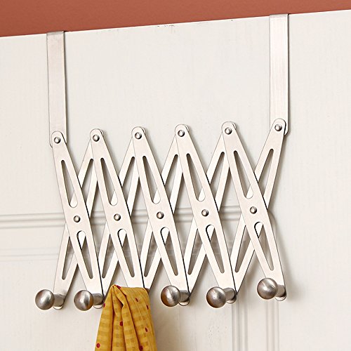 ECOLIFE Stainless Steel Expandable Coat Hook Rack-Easy Over Door Installation (6 Hook)