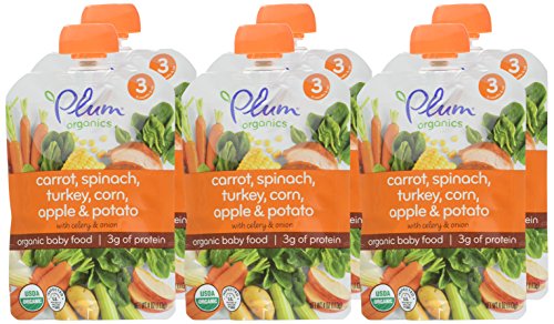 Plum Organics Stage 3, Organic Baby Food, Carrot, Spinach, Turkey, Corn, Apple and Potato, 4 ounce pouches (Pack of 6)