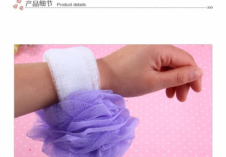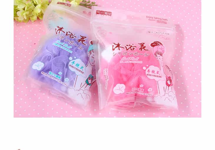 | Product Description | Today Yiping reticulocyte bath flower, unique non-slip wrist design, when so will not easily fall. High quality plastic fiber weaving, material safety, does not irritate skin, multiple draped massage on the skin, promote blood circulation, can effectively remove the body skin of dirt, so that the pores breathe, after flooding, only a small amount of milk bath, massage , you can release rich creamy foam, bath time and enjoy a happy, relaxed and rejuvenate. Notes: 1. The prolonged use, please clean or replace the product, please do not use bleach when cleaning. 2. Do not scrub the wound using this bacterial infection, so as not to deepen the wound inflammation. 3. Because new born baby delicate skin, do not use the product his bath. 4. This product is used in the body in vitro bathing, do not use it. 5. Do not be shared with family and maintain personal hygiene. 6. Rinse with water use a clean, dry storage. Keep away from sources of ignition and orgasm place 7. Save. |
