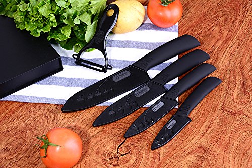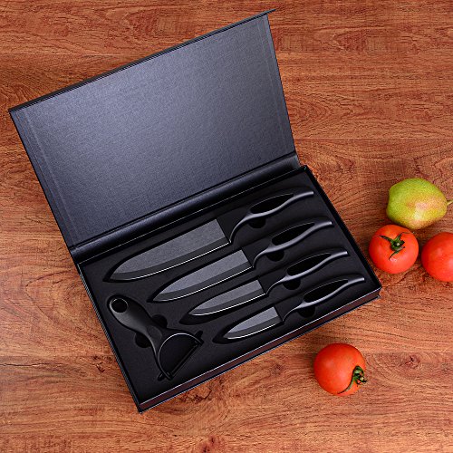 Timhome Tim홈5피스 블랙 세라믹 커트러리 키친 부엌칼 나이프 3고, 4,5인치,6고, 과일 필러 감자칼 (기프트 박스 부속)( tjc-154)
