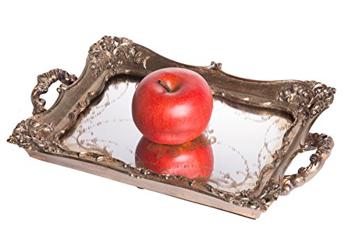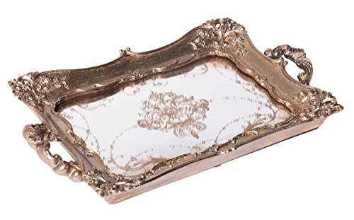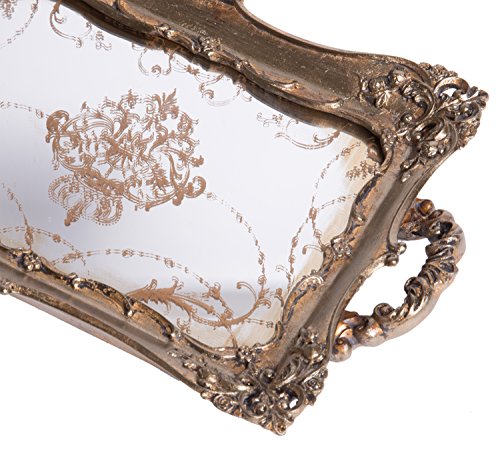 Decorative Gold Resin Antique Mirrored Tray, Vintage Chateau French Country Inspired Serving Platter, 12-inch
