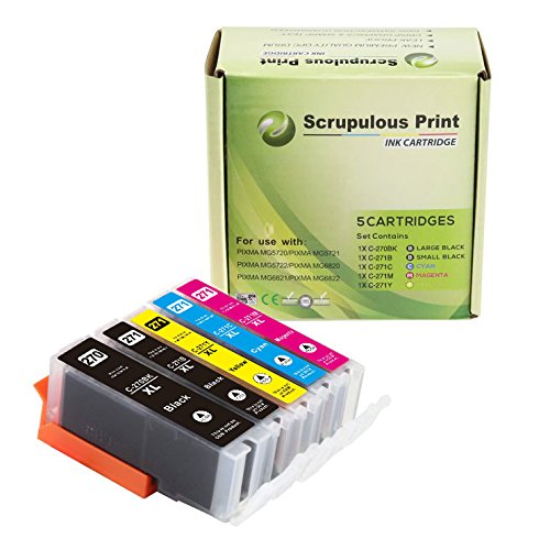 Scrupulous Print Compatible Ink Cartridge Replacement for 270XL 271XL (1 Large Black, 1 Small Black, 1 Cyan, 1 Yellow, 1 Magenta, 5-Pack)