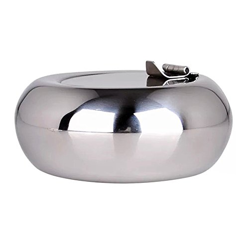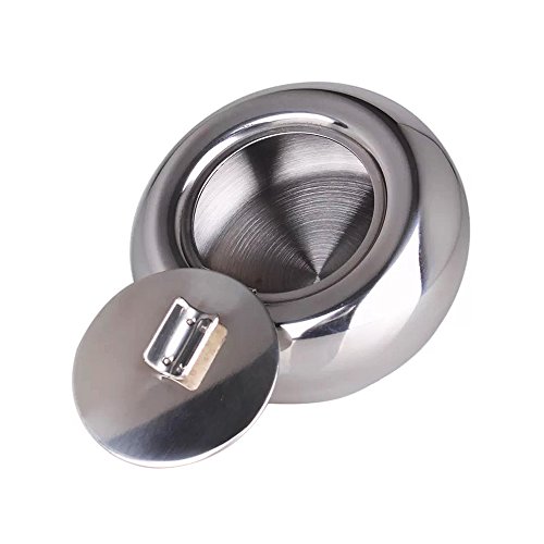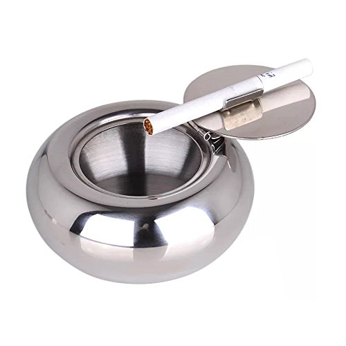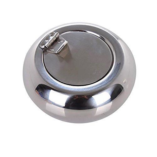 -. Title : Frideko Modern Portable Stainless Steel Cigar Smoking Ash Round Holder Cigarette Ashtray with Cover for Office Bars Pub Garden Home