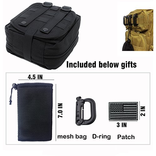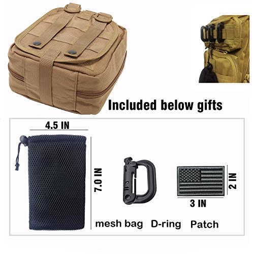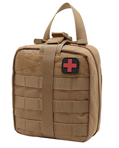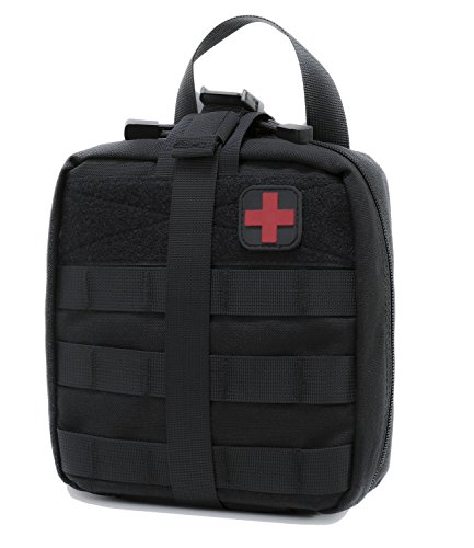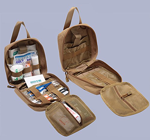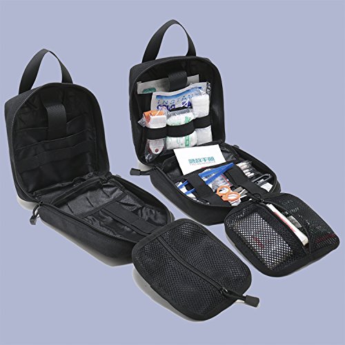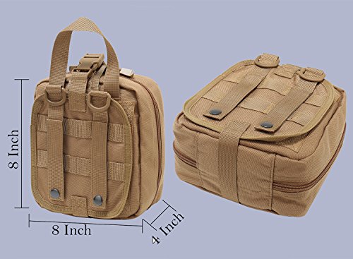 -. Feature : ★DIMENSION: 9"H X 8"W X 3"D. NET WEIGHT: 1 LB. MATERIAL: Made of high quality 1000D Nylon durable anti-scrape and wear-resistant.Great accompanist to all kinds of field environment. / ★CONSTRUCTION: Spacious compartments which include several pockets, strong elastic loops and instrument holders, a Velcro safety strap, and zippered mesh compartment for small first aid supplies. Dual YKK zippers and metal snaps on the MOLLE straps to keep your rip away medic pouch securely attached. / ★RAPID FIRST AID: Tri-fold design that provides fast access to first aid supplies.Rip away velcro panel feature and a wide handle for rapid removal makes it a snap to render first aid quickly. / ★FLEXIBILITY: With MOLLE system design, it's suitable for all MOLLE compatible gear such as a tactical vest, backpack or gear belt. It's also great in your car or truck. / ★SERVICE COMMITMENTS: We offer 90 Days Money Back Warranty. If you unsatisfied with the quality of our product, you can contact us with your complaints and 100% get your money back.