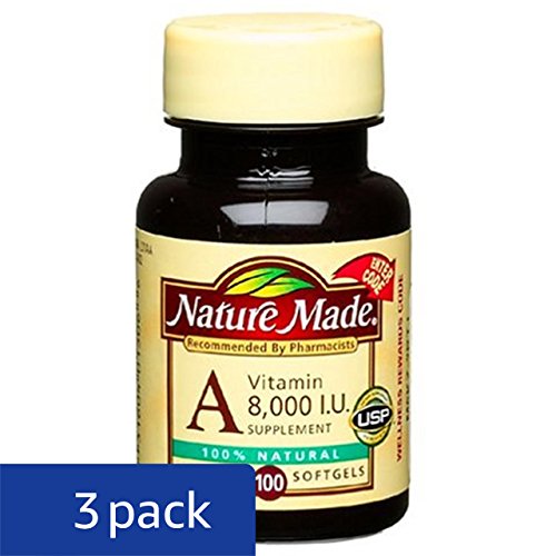 Nature Made Vitamin A, 8000 I.U., 100-Count Softgels (Pack of 3)