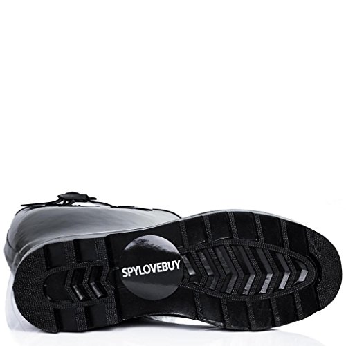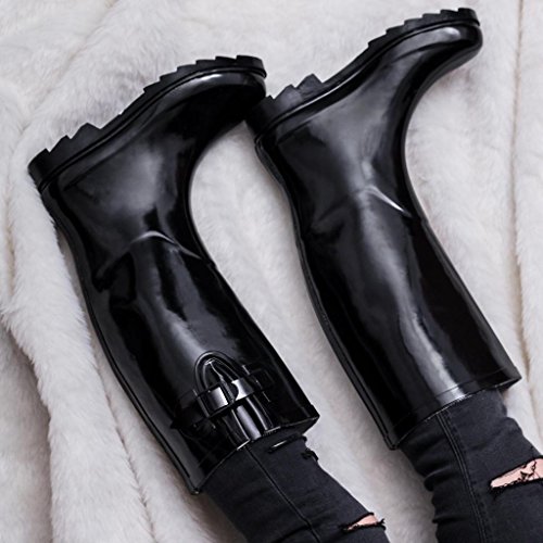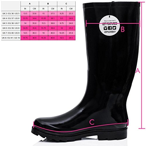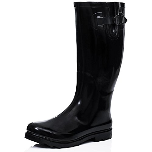Flat Wide Calf Wellie Wellington Festival Rain Boots - Black Patent