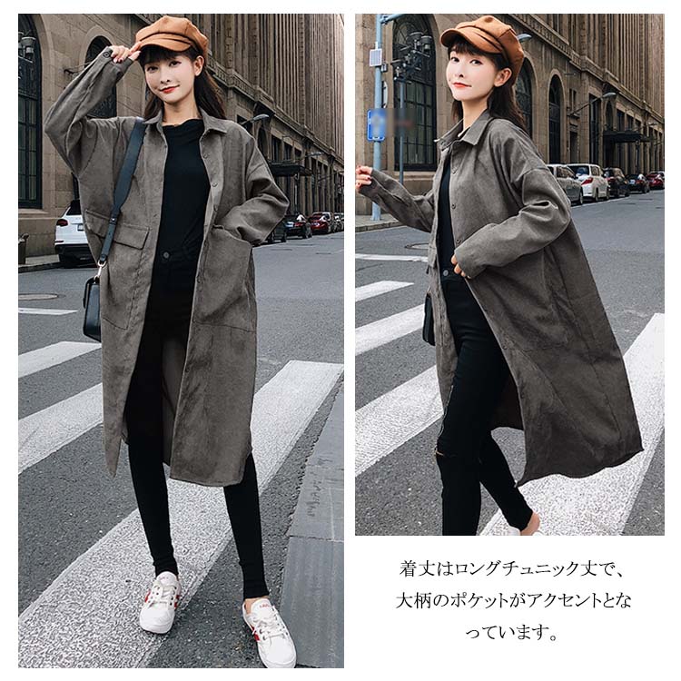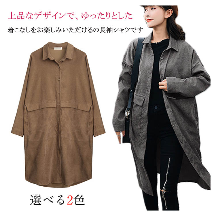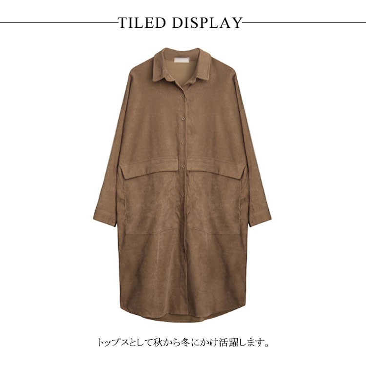 | 上品なデザインで、ゆったりとした着こなしをお楽しみいただけるの長袖シャツです。品の良いで、デニム、パンツ類など幅広い組み合わせでお楽しみいただけます。着丈はロングチュニック丈で、大柄のポケットがアクセントとなっています。トップスとして秋から冬にかけ活躍します。 | |