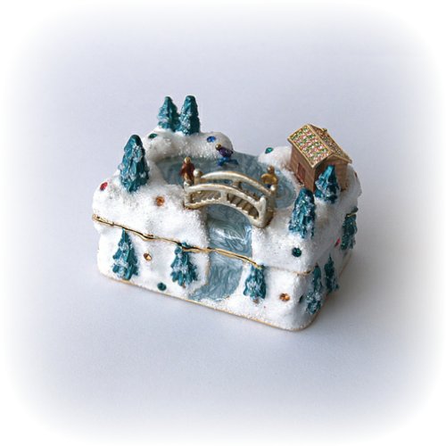 Ice Skating Scene Keepsake Box Swarovski Crystals Ice Hockey Trinket or Pill Box Figurine