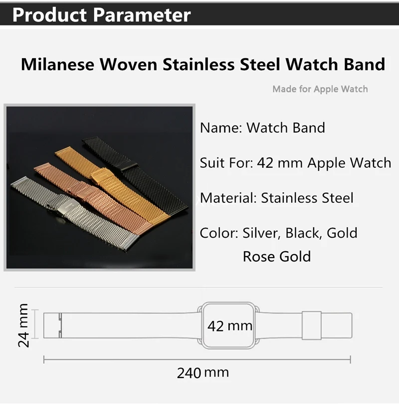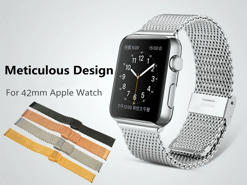 1 미리메터 자기 폐쇄 Milanese 짠 스테인레스 스틸 손목 스트랩 42 미리메터 사과 시계