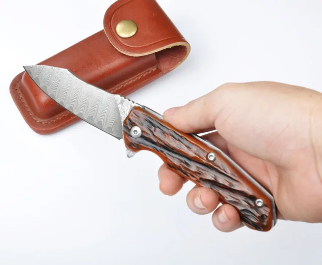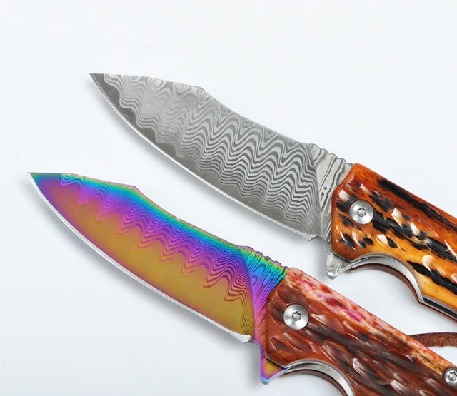 | [해외] VOLTRON V04 61HRC 다마스커스 블레이드 동물 뼈 핸들 접는 나이프 유틸리티 전술 생존 야외 캠프 사냥 EDC 도구 |